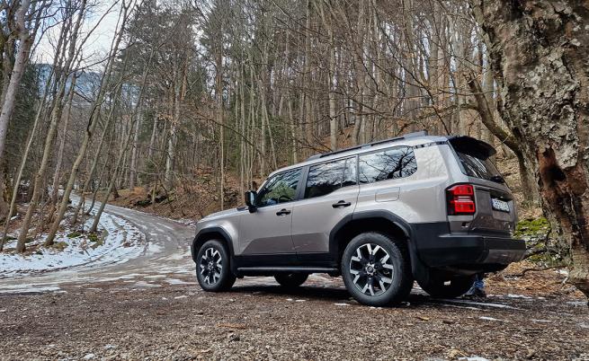 И откъм гърба виждаме доста огромно задно стъкло. Иначе още веднъж имаме класическата емблема TOYOTA, голяма ризница и old school шумозаглушител. Интересно е отварящото се настрана от задната врата стъкло, каквато имаше и предходния модел. А под дъното на багажника е инсталирана пълноразмерна гума, нещо безусловно наложително за същински офроудър.