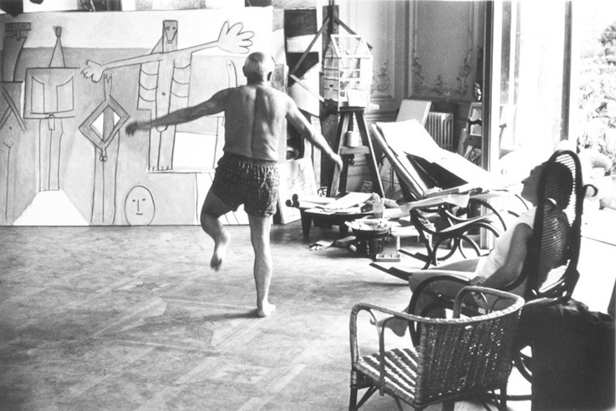 (Pablo Picasso in front Baigneurs a la Garoupe, Villa La Californie, Cannes, 1957. Photo by by David Douglas Duncan)