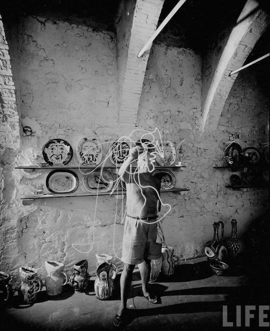 (Pablo Picasso " draws with light " by Gjon Mili, 1949)