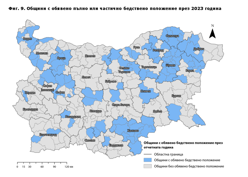 In 2023, disasters affected, either partially or entirely, the territories of 88 municipalities across the country. The highest number of disasters was recorded in municipalities in the regions of Varna, Sofia, and Vratsa, while no states of emergency were declared in the regions of Kyustendil, Lovech, Sofia (capital), and Yambol.