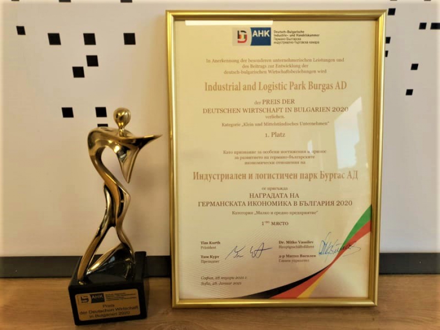 " Индустриален и логистичен парк Бургас " АД бе почетен с Наградата на немската стопанска система в България в категорията за " Малко и приблизително дружество ". Тя се връчва от Германо-Българската индустриално-търговска камара.