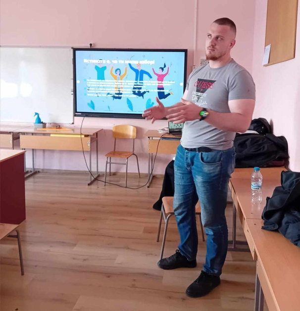 Д-р Димитър Дачев показа способи за превъзмогване на незабавни обстановки, провокирани от използването на опиоидни субстанции. Той срещна участниците в образованието с физическите признаци и държанието на възпитаници при приложимост на наркотични субстанции. Специалистът изясни типовете зависимости и резултатите върху съзнанието и здравословното положение на учениците, като сподели техники за оказване на първа здравна помощ. Д-р Дачев съобщи, че всеобщият първоизточник за зависимостите, който води до цигарите и опиатите, е алкохолът, а марихуаната е най-масовият опиат измежду младежите.