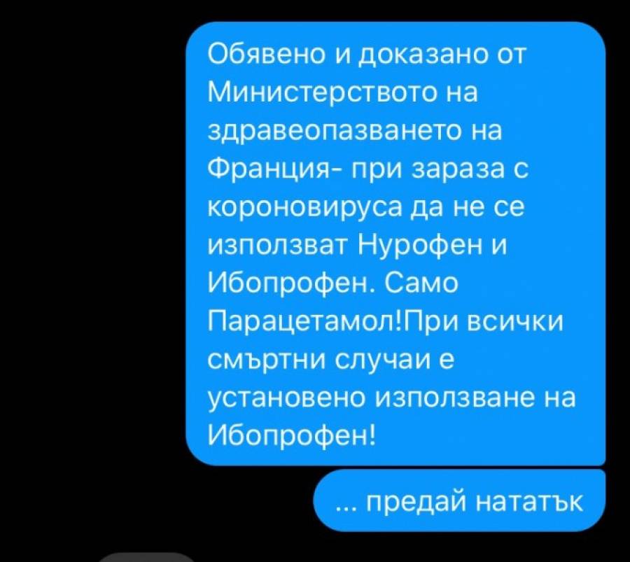 Информацията на " Фигаро " и Франс прес, че медикаментите, съдържащи нестероидни противовъзпалителни средства като да вземем за пример ибупрофен и кортизон, могат да влошат положението на болните с ковид, се оказа недостоверна.