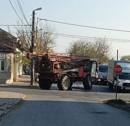 Инцидент с комбайн бави трафика СНИМКИ