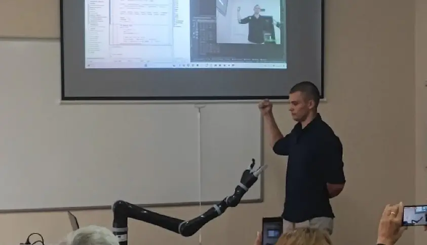 Инженер Цветан Минчев – студент по магистърската стратегия „ Автоматика “ на Техническия университет – филиал Пловдив е уверен, че в случай че роботизирана ръка доближи съвършените придвижвания на човешката, от това ще има огромни изгоди. Затова той научи своя робот да вижда ръката му и да повтаря безусловно тъкмо придвижванията ѝ.