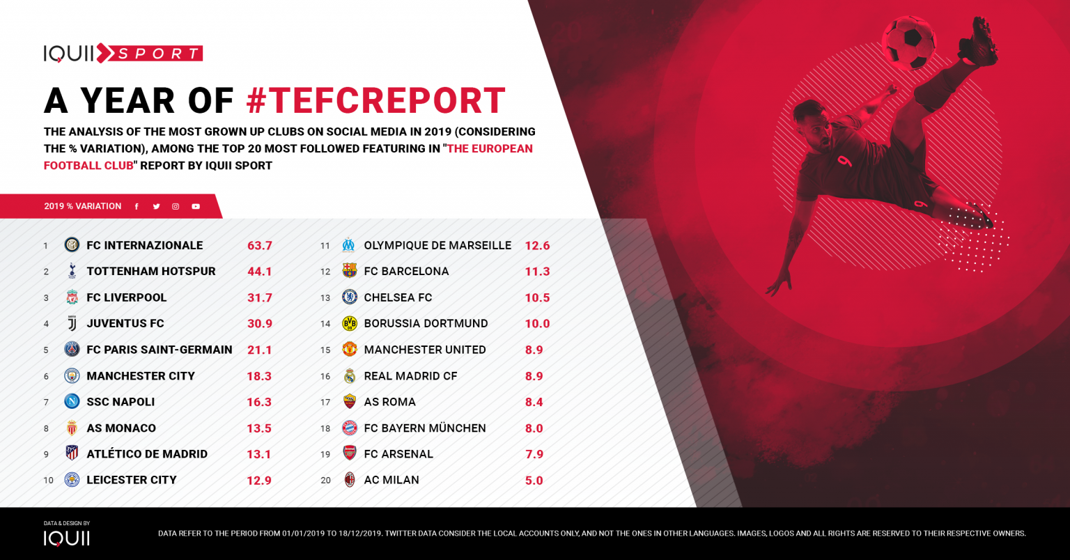 „ Интер се намира пред всички с растеж на почитателите от 63.7% през 2019 година. Пристигането на Антонио Конте и първото място в Серия „ А “, дружно с Ювентус, сигурно са съдействали за този напредък. Добрата работа на Inter Media House също има голям принос. Иновативните акции #NotForEveryone и #Buu (Brothers Universally United) против расизма са образец за добра работа “.