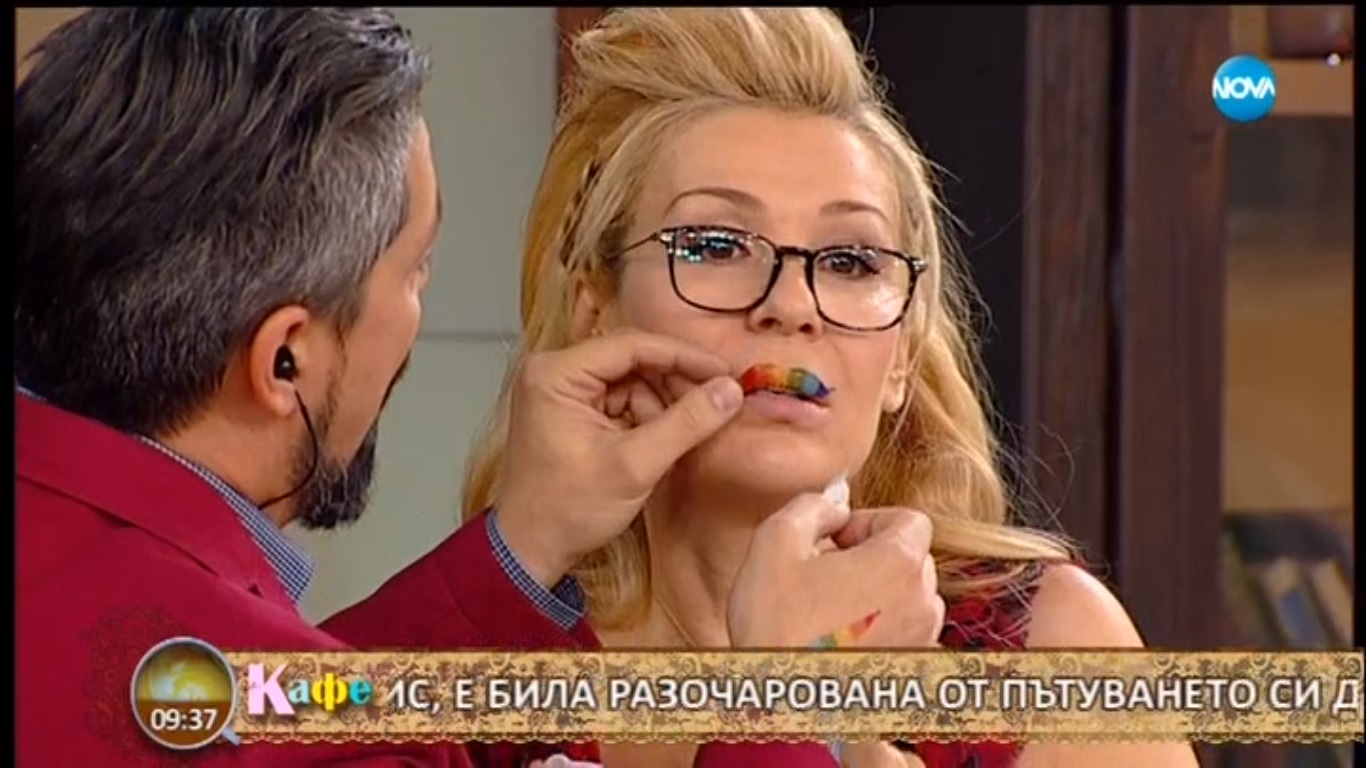 В последна сметка Стефан съумя да я направи с разноцветни устни и тя продължава да води по този метод.