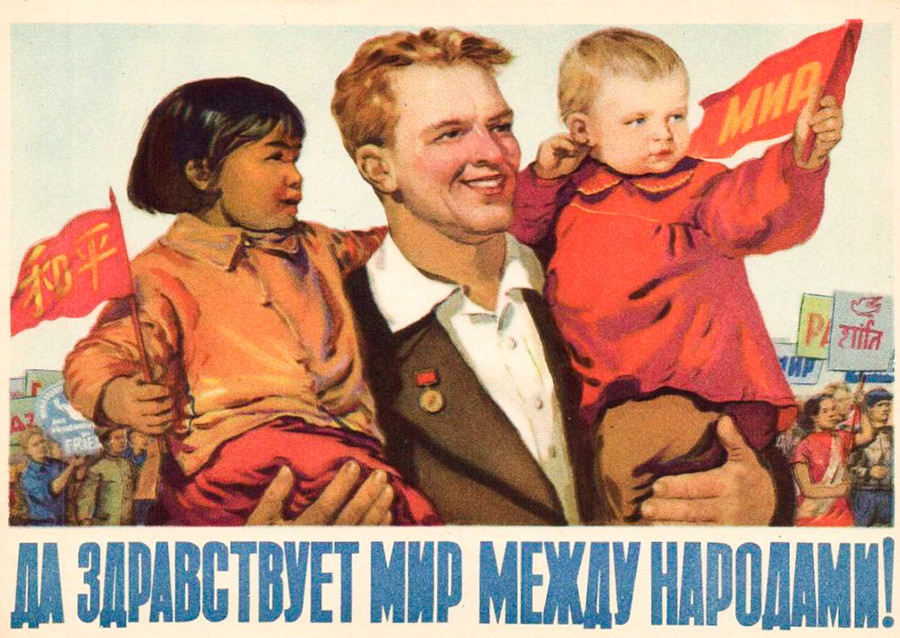 „ Ние сме за дружба и мир! Топлото ни одобрение прелита целия свят! Ние сме за дружба и мир! “