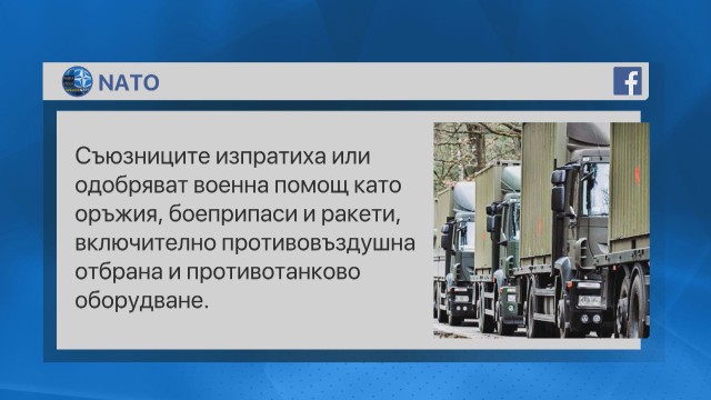 Съюзниците изпратиха или утвърждават военна помощ като оръжия, муниции и ракети, в това число противовъздушна защита и противотанково съоръжение.
