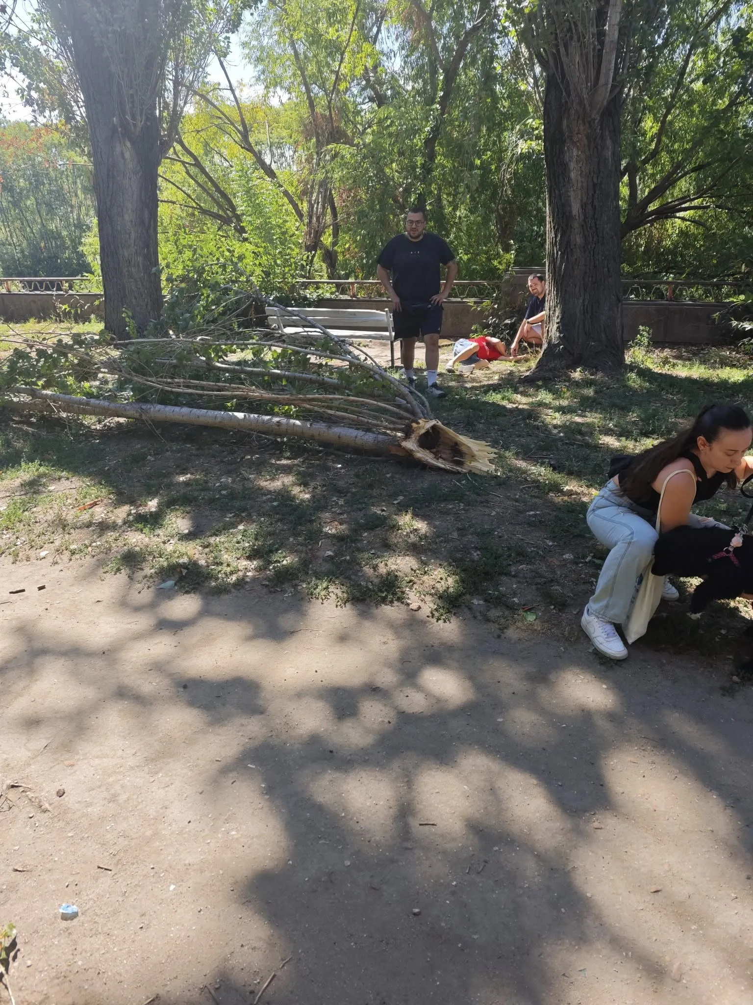 По думите ѝ голям клон се е отчупил и е паднал върху преминаващ мъж. По непотвърдена информация потърпевшият е с контузии в региона на главата и кръвозагуба. На място са били извикани екипи на Спешна помощ и пожарната. Новакова прецизира, че колата за спешна помощ е пристигнала едвам след към 30 минути.
