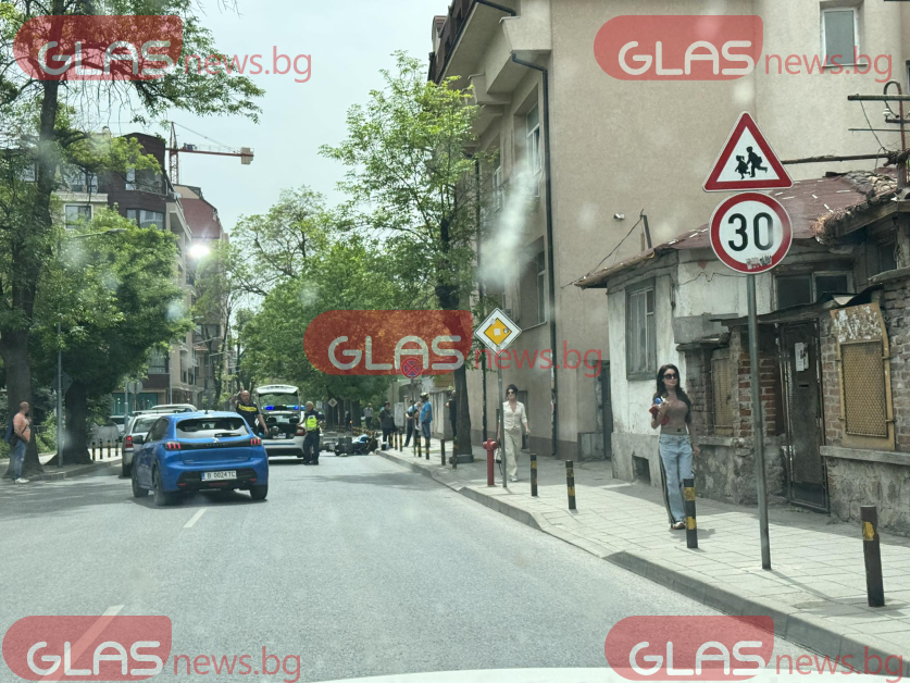 Инцидент сред лек автомобил и мотор е станал на ул. " Петко Д. Петков ", директно до 4 районно управление (на МВР), научи GLasNews.