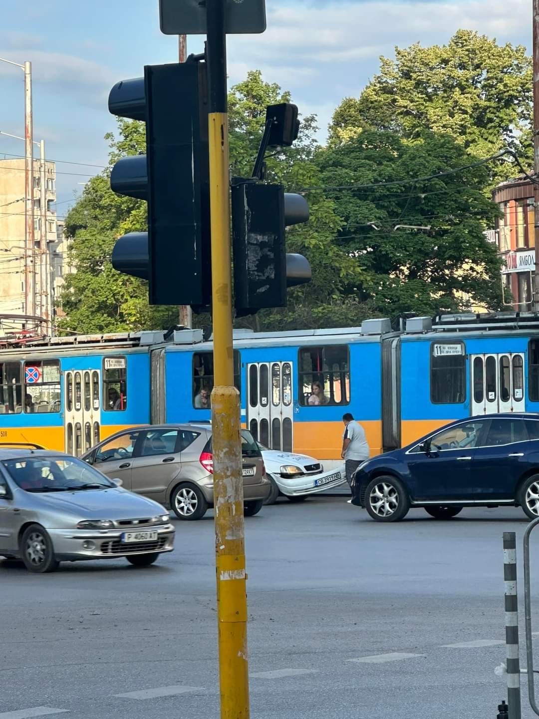 Патрулка се блъсна в трамвай, отнесоха й бронята СНИМКИ
