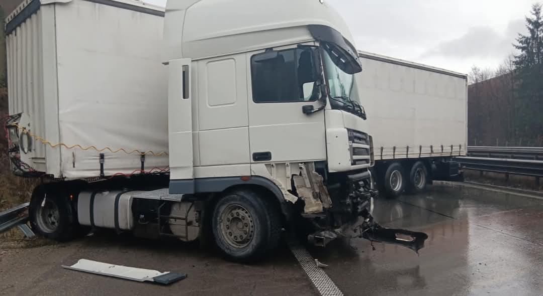 Инцидент на автомагистрала „ Хемус “. Тир се е завъртял на мокрия асфалт. Катастрофата е довела до блокиране на придвижването и километрична опашка.