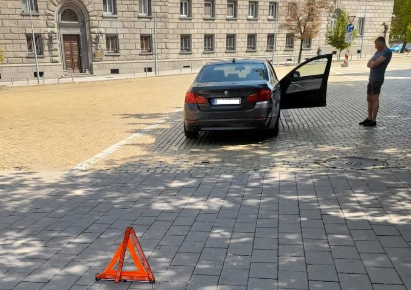 Инцидент пред Президентството - решетка на отводнителен канал проби купето на преминаващ автомобил.