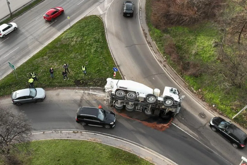 Бетоновоз се обърна в София СНИМКИ+ВИДЕО