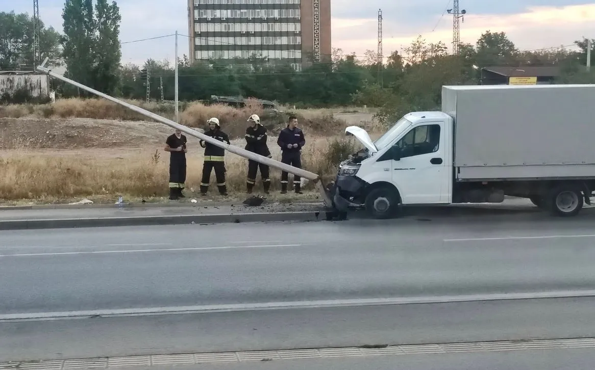 На прав участък: Камион се заби в стълб в София, пристигнаха огнеборци и медици СНИМКИ