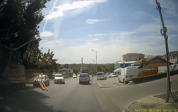 На тях се вижда камиончето е паркирано вдясно на пътя и други коли го заобикалят, един от водачите, който транспортира и товар на покрива си, обаче се блъска непосредствено в него.