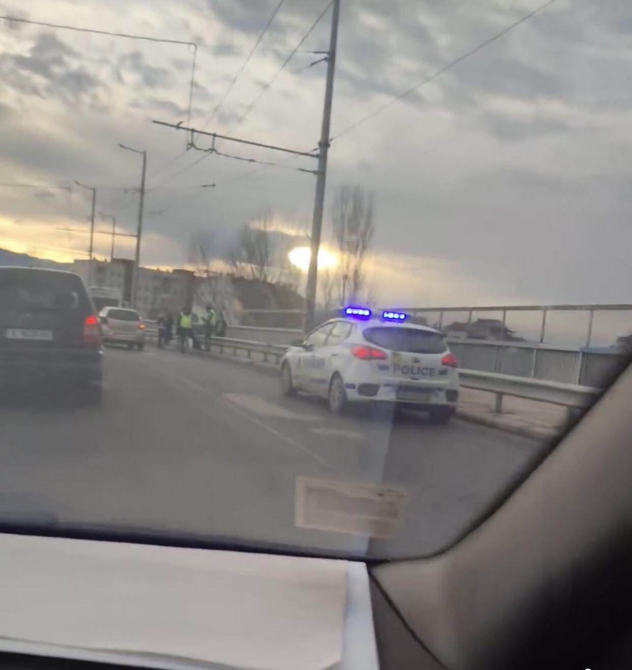На място има екип на полицията и Бърза помощ. Освен тях и два автомобила са отбити в дясната лента.