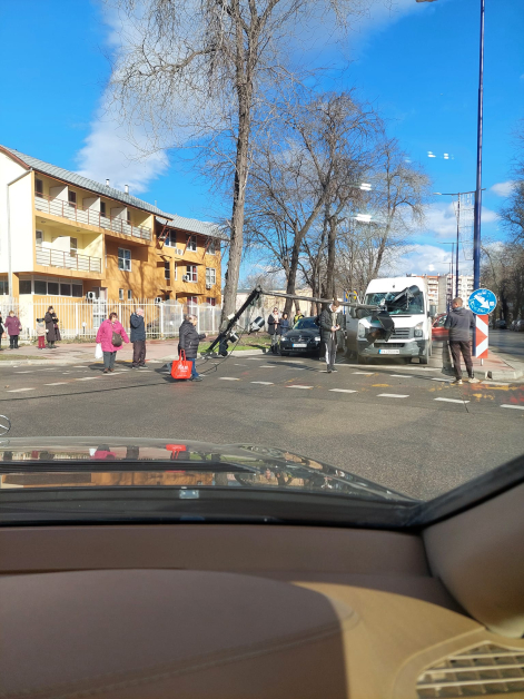 Счупено е предното стъкло на транспортното средство. Според очевидци цяло знамение е, че няма потърпевши хора.