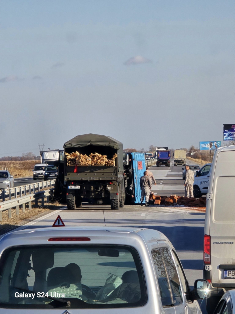 Катастрофа с военен камион на Тракия, движението е затруднено СНИМКИ