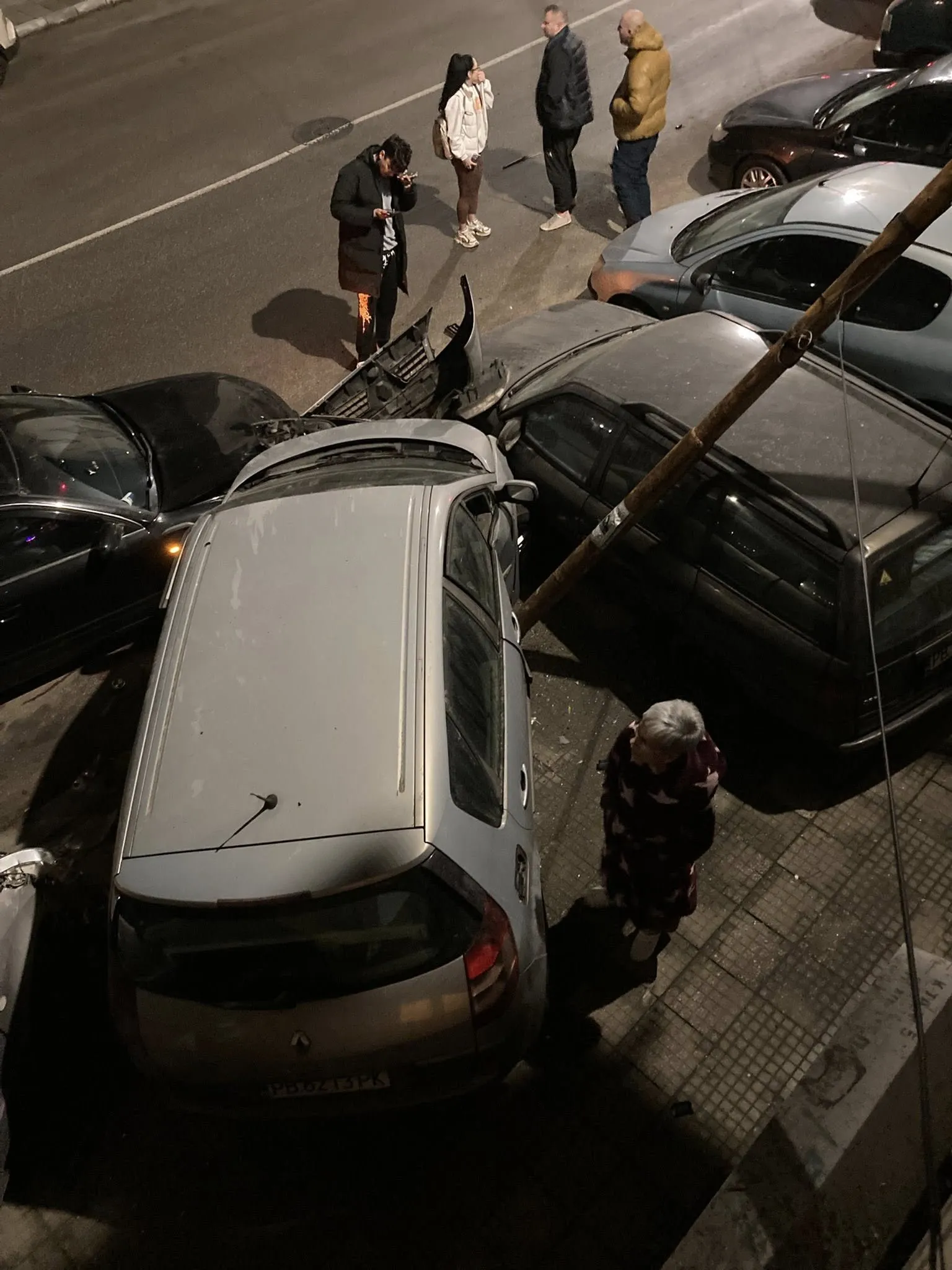 Кола се вряза в паркирани автомобили и стълб в Асеновград тази нощ СНИМКИ и ВИДЕА