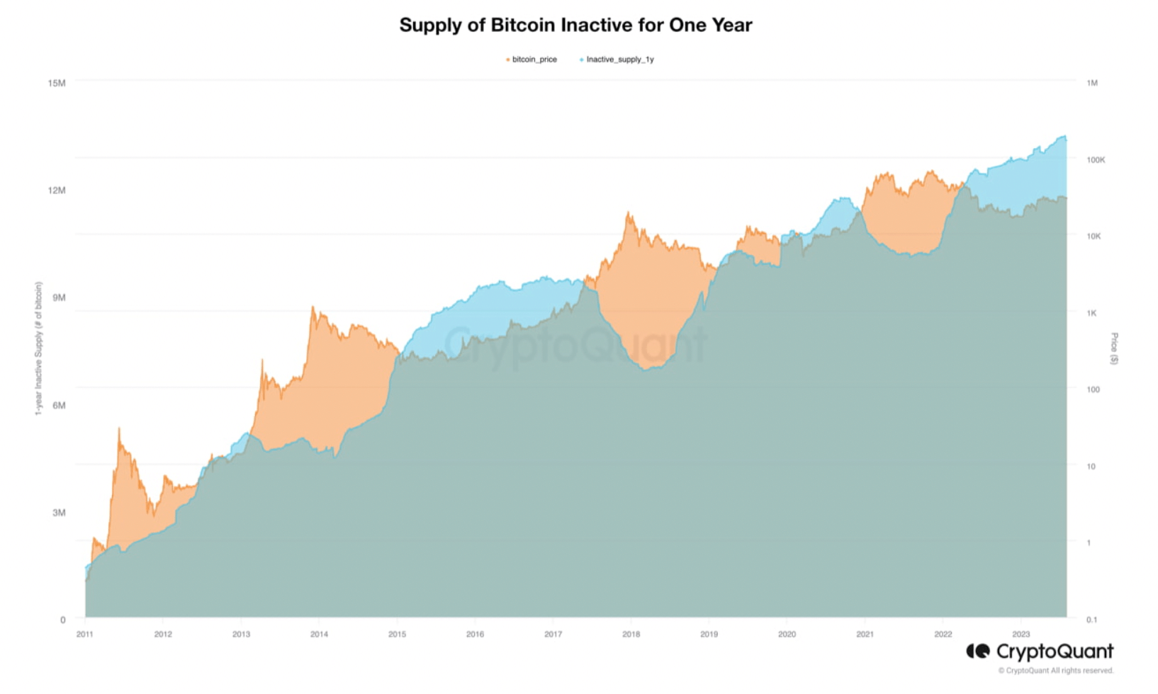 Инвестиралите в Биткойн (BTC) показват постоянен ангажимент да държат монетите си на сегашните ценови равнища, защото 13.42 милиона BTC са останали неактивни в Биткойн адресите от август 2022 година насам.