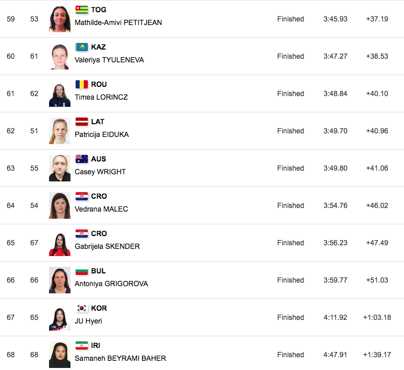 Иранката приключи последна в квалификацията на класическия спринт, като бе изпреварена от българката Антония Григорова.