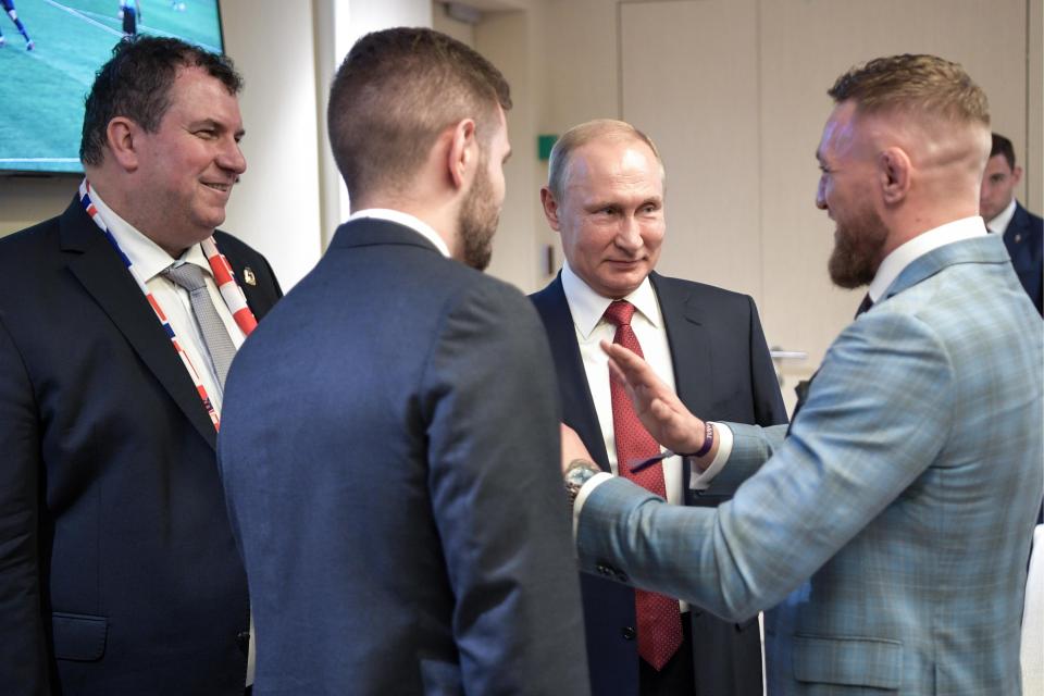 Макгрегър дойде в Москва по покана на Путин и бе специфичен посетител на финала на Световното състезание по футбол, в който Франция победи Хърватия с 4:2.