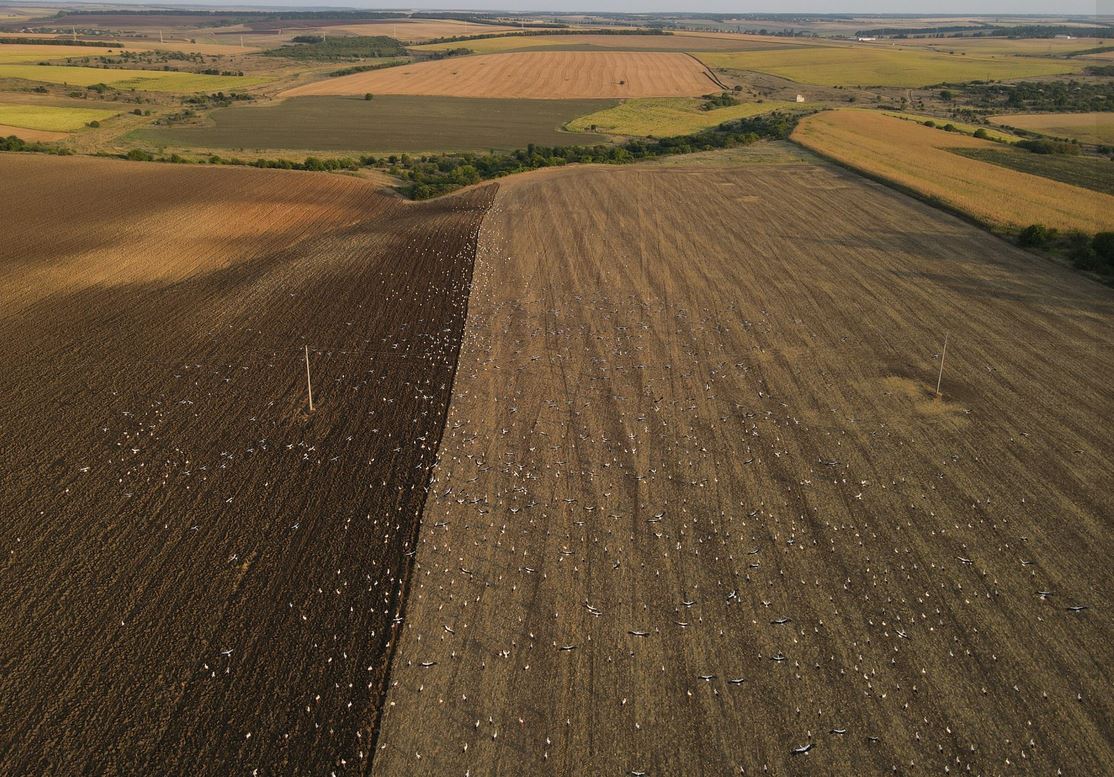 Цяло поле, което е изпълнено с красивите птици, бе снимано край Добрич. Красивата панорама споделиха на страницата на Българско сдружение за отбрана на птиците. Граждани споделиха и други красиви фрагменти на птиците. Техният полет бе сниман край Варна и Бургас.