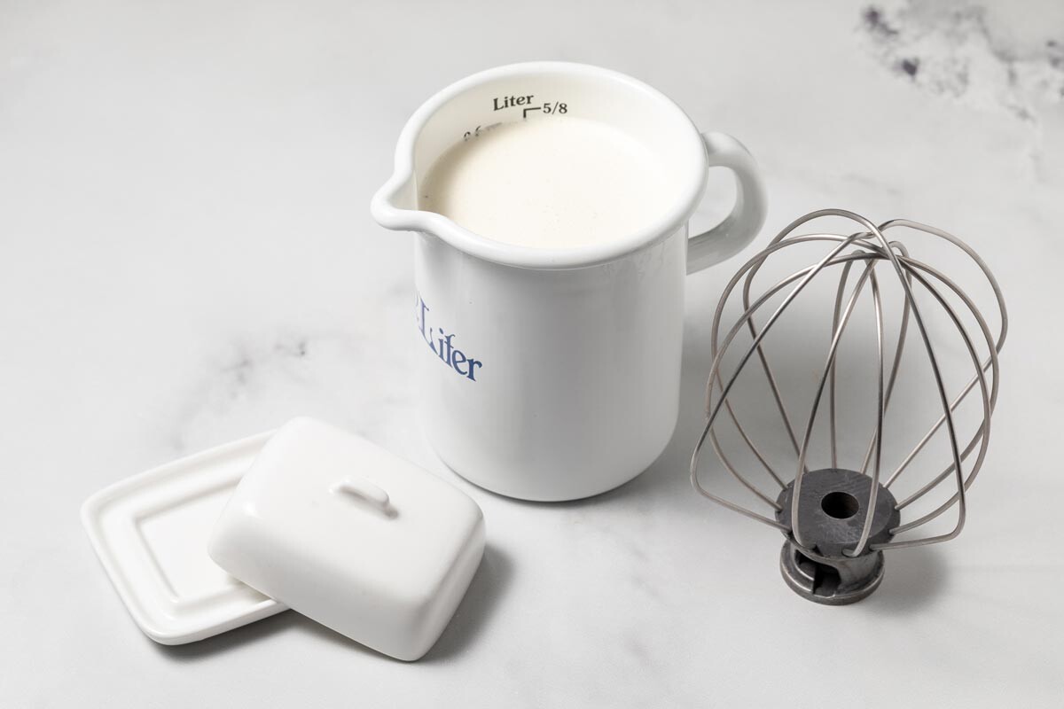 След леко втвърдяване увеличете скоростта на оптималната и разбивайте за към 7 минути. Ще забележите, че сметаната ще стане твърда – това е маслото. А в купата се появява течност – това е мътеницата.