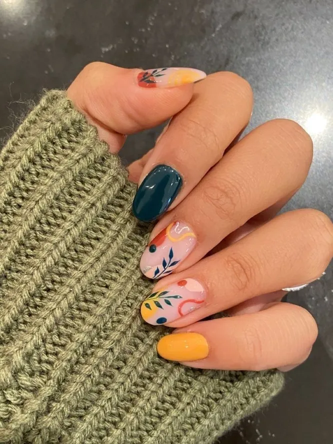Следващият вид е ослепителен, радостен и с доста свободен дух. Тук виждаме богат зелен акцент с жълто и нереални шарки с листа и талази. Маникюрът като че ли символизира самото лято - топъл, богат, с лек безпорядък. Отличен избор е изключително в случай че желаете да добавите повече цветове към визията си.