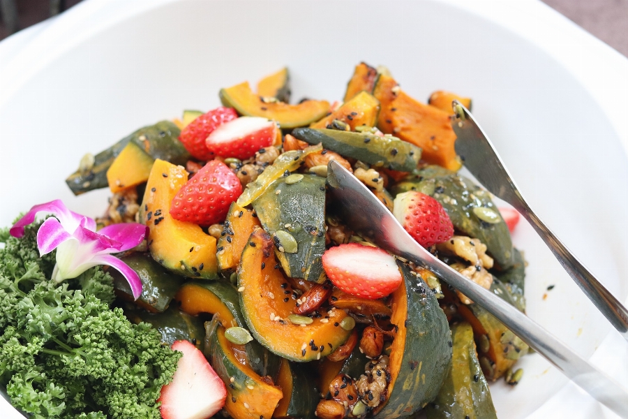 За празнична софра могат да се подготвят вкусни салати от тиква. Тази рецепта ще опише по какъв начин да извършите доста вкусна и здравословна салата. Тя съчетава богат оранжев цвят от тиква, ярки и зелени, тъмни зелени и светли цветове. Тази салата е неповторима и с това, че ще има разнообразни усети: сладка от тиква, кисела с балсамов оцет, солена със соев сос, горчива от зехтина.