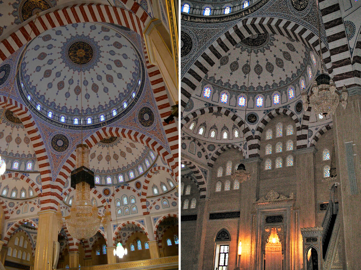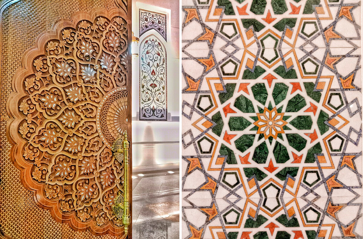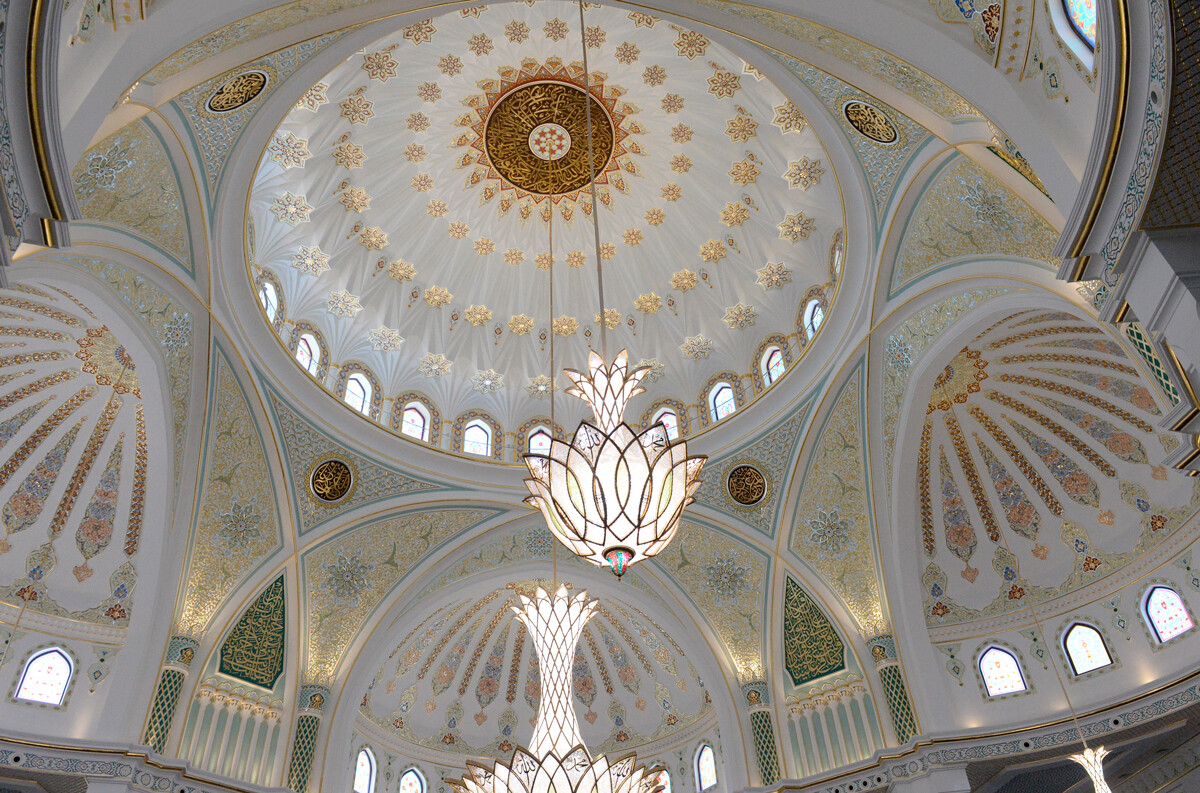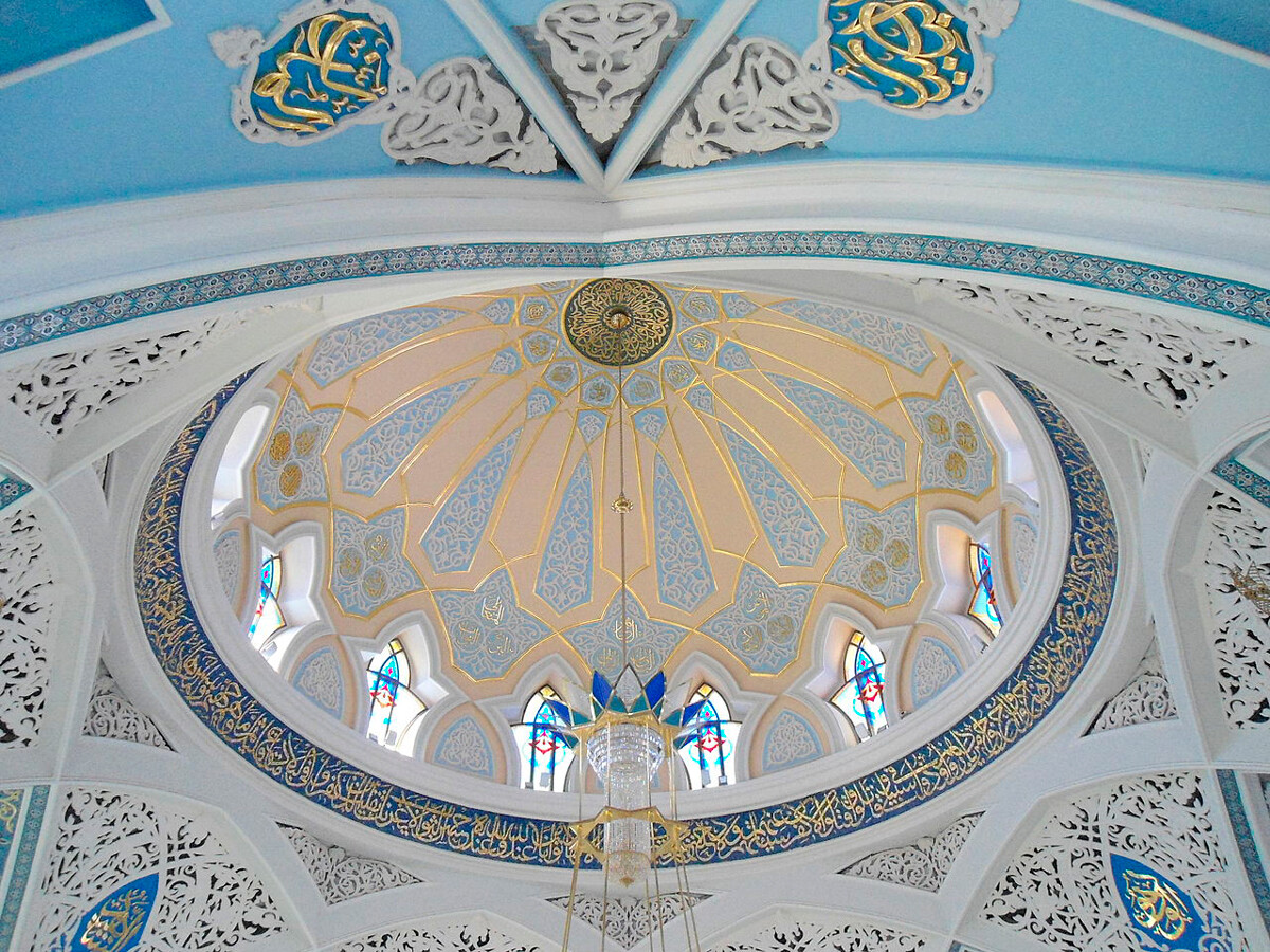 Джамията оправдава името си. Белият мрамор, изобилието от злато и ръчният рисунък трансформират „Гордостта на мюсюлманите“ в една от най-красивите Джамии в Русия.