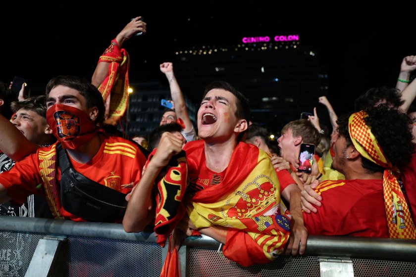 В неделя вечер към 15 хиляди испанци на " Олимпиящадион " в Берлин отпразнуваха триумфа на своите любимци, а оттатък милионите, които гледаха мача по малкия екран, назад в Испания хиляди излязоха по улиците след последния сигнал на съдията и успеха с 2:1.