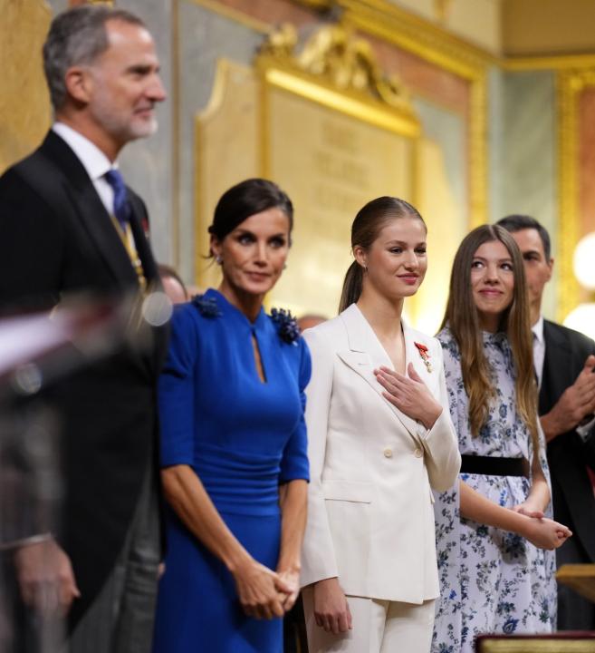 Придружена от татко си и майка си - крал Фелипе Шести и кралица Летисия, както и от сестра си София, Леонор де Бурбон постави клетва пред двете камари на Народното събрание на изключителна сесия.