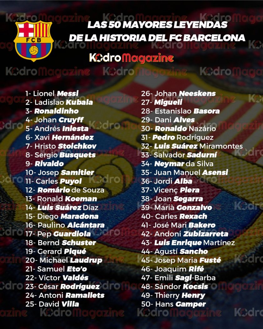 Зад родната суперзвезда останаха куп славни футболисти като Ривалдо, Карлес Пуйол, Ромарио, Роналд Куман, Луис Суарес, Диего Марадона, Пеп Гуардиола, Бернд Шустер, Жерард Пике, Михаел Лаудруп, Самуел Ето`о, Давид Вийя, Йохан Неескенс, Роналдо, Луис Суарес Мирамонтес, Неймар, Луис Енрике, Андони Субисарета, Тиери Анри и други