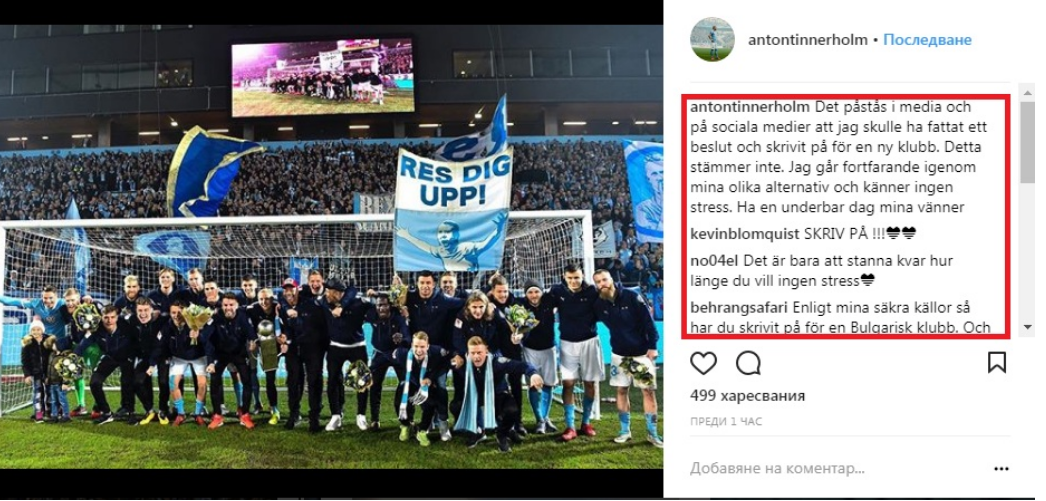 " Още не съм подписал. Имам и други оферти. В момента премислям кое е най-хубавото за мен ", написа Тинерхолм в Инстаграм.