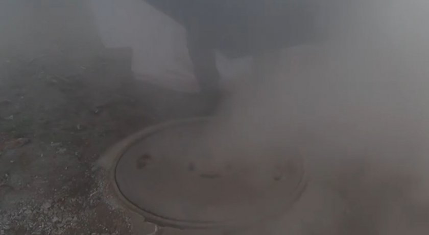 Но парадоксът не стопира до тук. Оказва се, че имаме и първия тротоар с подово отопление. От него безусловно излиза пара.