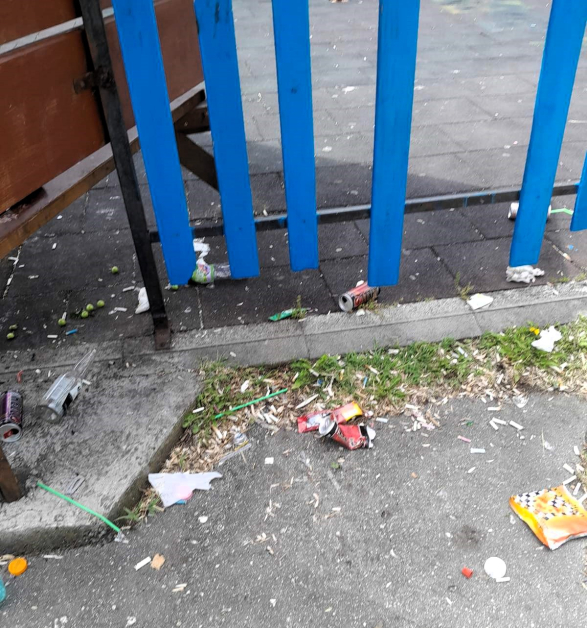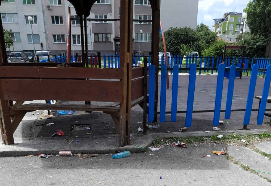 Районът към детската площадка е посипан с отпадъци – младежи, вместо да хвърлят отпадъците в кофите, ги оставят по земята. Само преди няколко месеца GlasNews описа за същото място: тогава едни младежи сътвориха грозна панорама, а други доброволци я почистиха.
