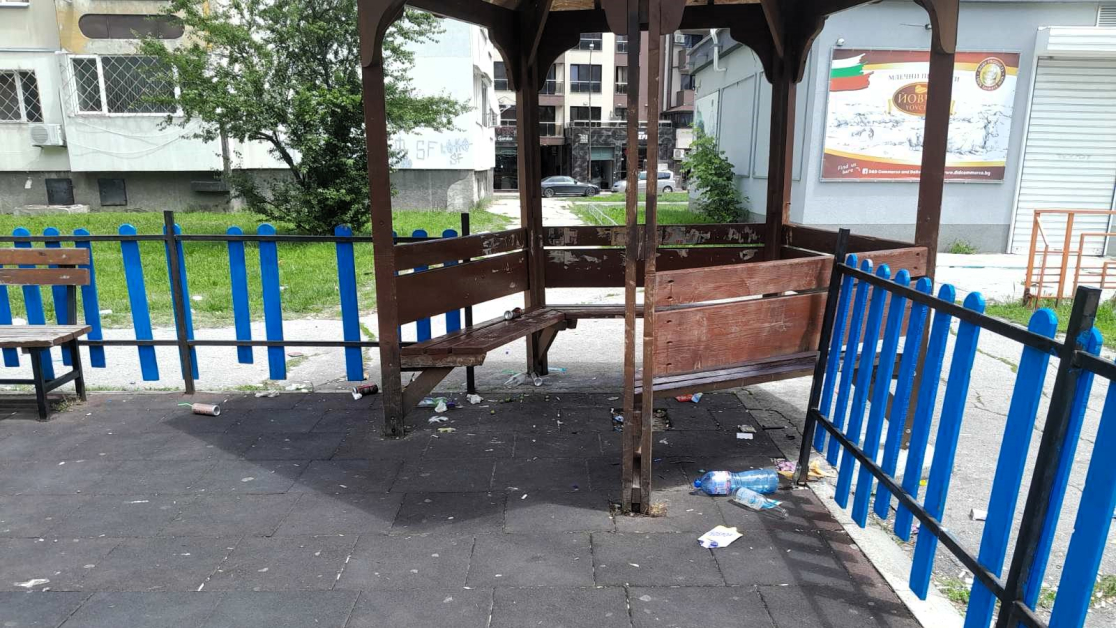 Историята се повтаря – беседка в столичния квартал „ Надежда “ за следващ път провокира бурни полемики онлайн поради положението, в което я оставят някои от посетителите ѝ.