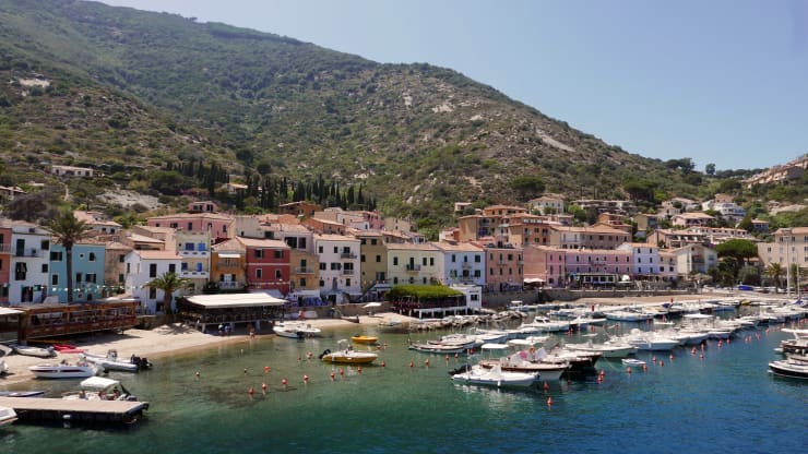 Снимка: Пристанището в Джилио, Италия | Източник: Getty ImagesСвързан с тихи пътища с континенталната част на Тоскана, полуостров Монте Арджентарио е дом на Il Pellicano, някогашен частен дом, трансформирал се в влиятелен хотел. Той е закупен от италианския бизнес магнат Роберто Скио през 1979 година и сниман през идващото десетилетие от Слим Аарънс, който се прочува с това, че улавя в обектива си всемирски подиуми от живота на звездите.Известен със звездната си прелест, в този момент се ръководи от щерка му Мари Луиз Скио, която е израснала в хотела и го е възстановила в средата на 2000-те.Съвети от експертиНеотдавнашно изобретение за Мария Луиза Скио беше северният италиански град Виченца, ситуиран на към час западно от Венеция.„ Град Виченца и вилите Паладио във Венето са обект на международното завещание в Италия, който пази постройките на архитекта Андреа Паладио “, сподели тя пред CNBC по имейл.Джорголо има няколко рекомендации за гости, които желаят отмора от тълпите в разгара на сезона.„ Посетете Умбрия с нейните прелестни хълмове и красиви градове, отидете в Лука в Тоскана, украшение, по-малко известно от Флоренция, и открийте град Торино и района Ланге “, сподели тя.