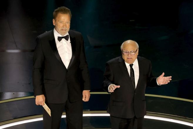 В друго събиране, подготвяно повече от 30 години, Арнолд Шварценегер и Дани Де Вито излязоха на сцената в неделя вечер като водещи и по този метод поздравиха общата си история.