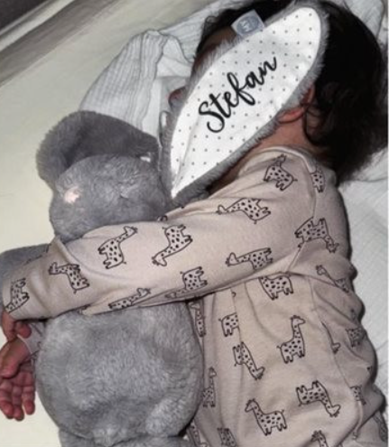 " Честит Великден ", написа тя и пусна кадър, на който се вижда по какъв начин синът ѝ спи, гушнал зайче, а на едното му ухо е избродирано неговото име.