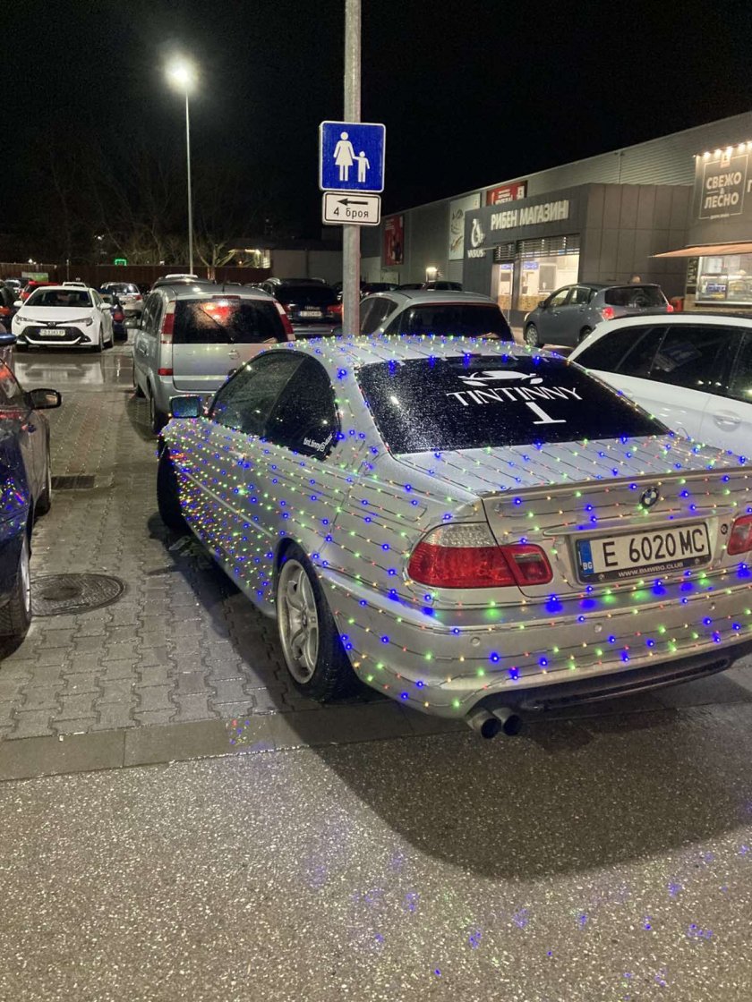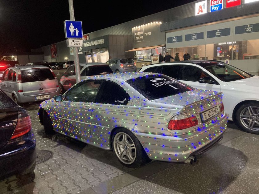 Коледно БМВ с лампички изби рибата в Благоевград (СНИМКИ)
