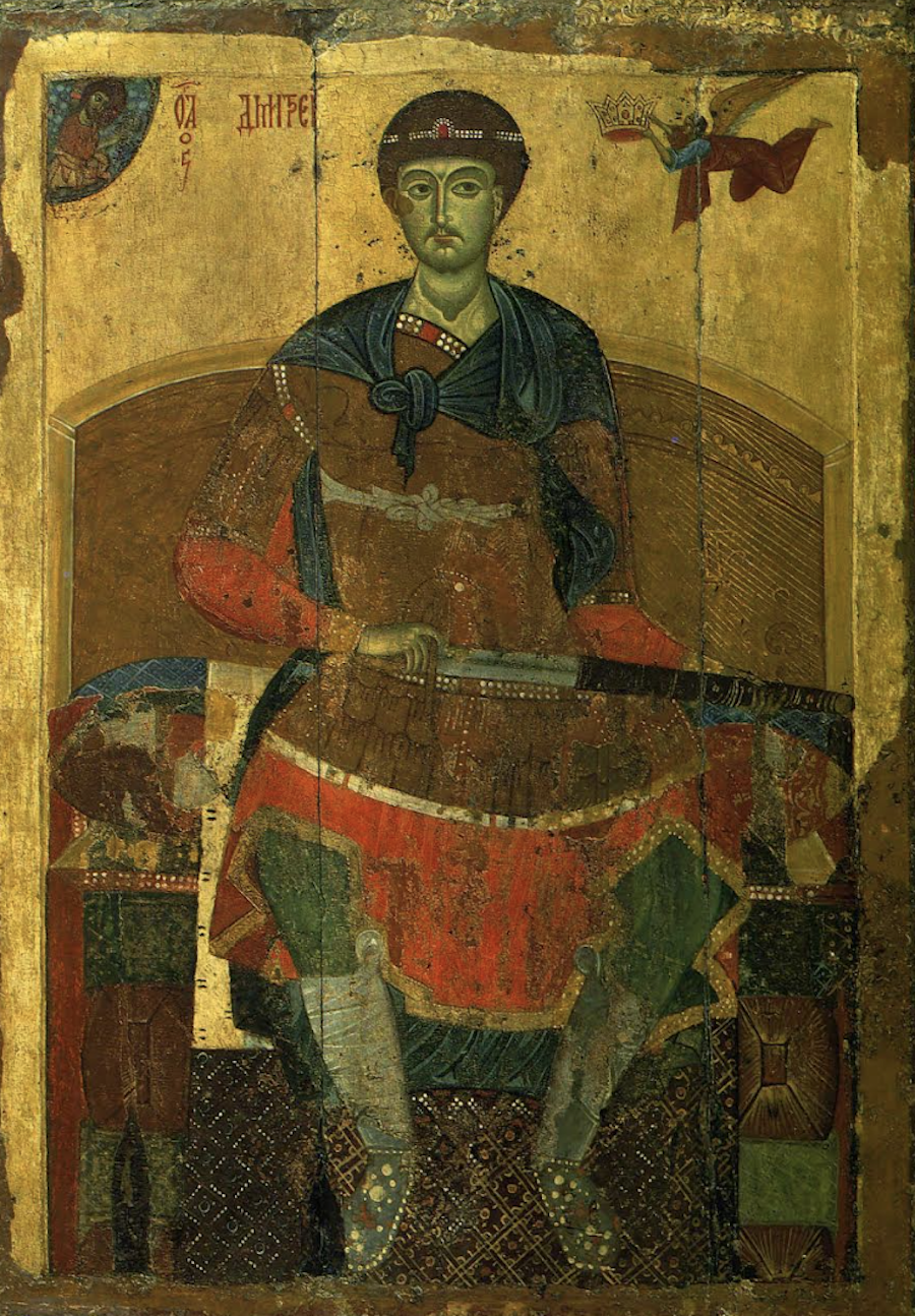 (Святой Димитрий Солунский (русская икона, XII– нач. XIII вв.), Государственная Третьяковская галерея, Москва)