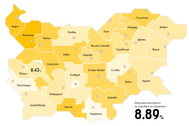 Най-ниската изборна интензивност е в Кърджали, 24 МИР-София, Пловдив, Кюстендил и Сливен.
