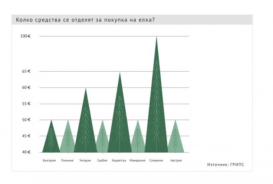 Българинът отделя приблизително сред 90 и 100 лв. за покупка на изкуствена коледна елха. Приблизително толкоз отделя и семейство в Румъния, Македония, Сърбия и Австрия (45-50 евро). Около двадесет % повече - в Унгария и Хърватска (60-65 евро), а най-вече – в Словения (100 евро). Последните години фамилиите харчат повече, като няма разлика сред столиците и огромните градове.