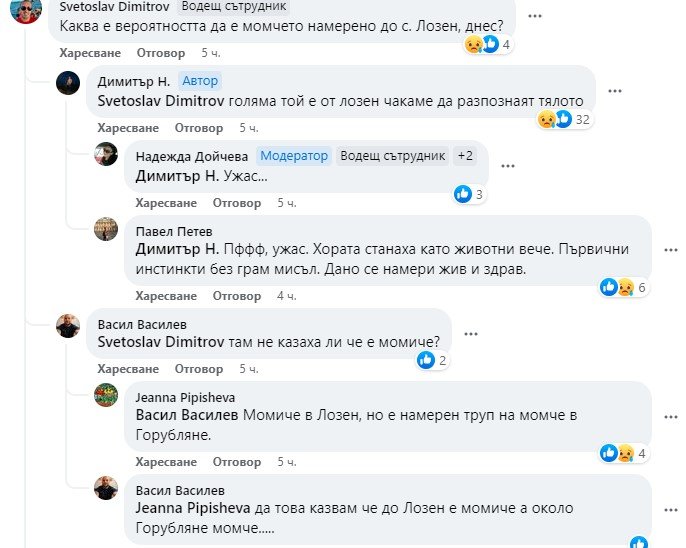 " Момчето е открито убито, " написа Димитър Н., който разгласява в мрежата известието за изгубването му.