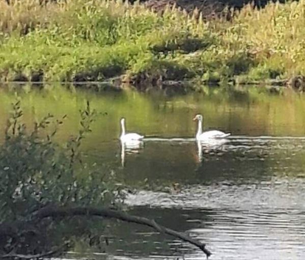 Двойка лебеди са видяни във водите на реката в следобедните часове през днешния ден. Те бавничко плавали из реката, наслаждавайки се на спокойните води.