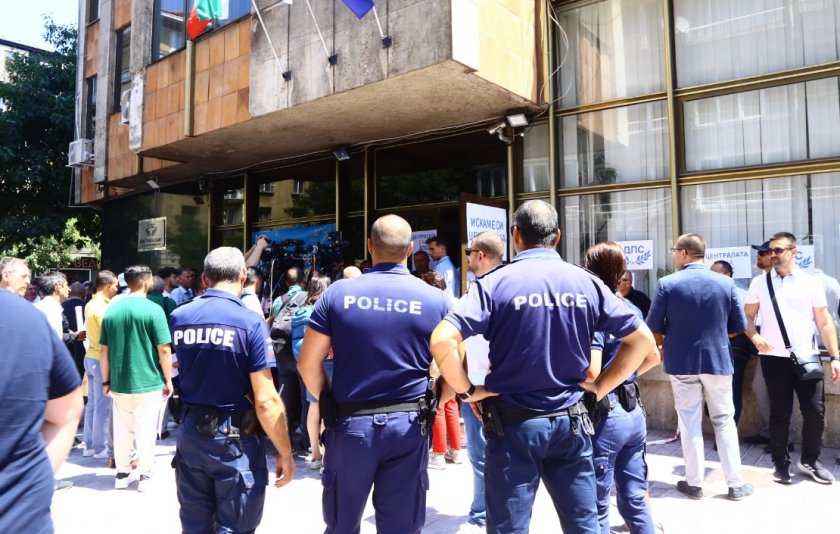Полицията пази входа и не пуска вътре медии. Улицата пред централата бе блокирана от полицейски бус.